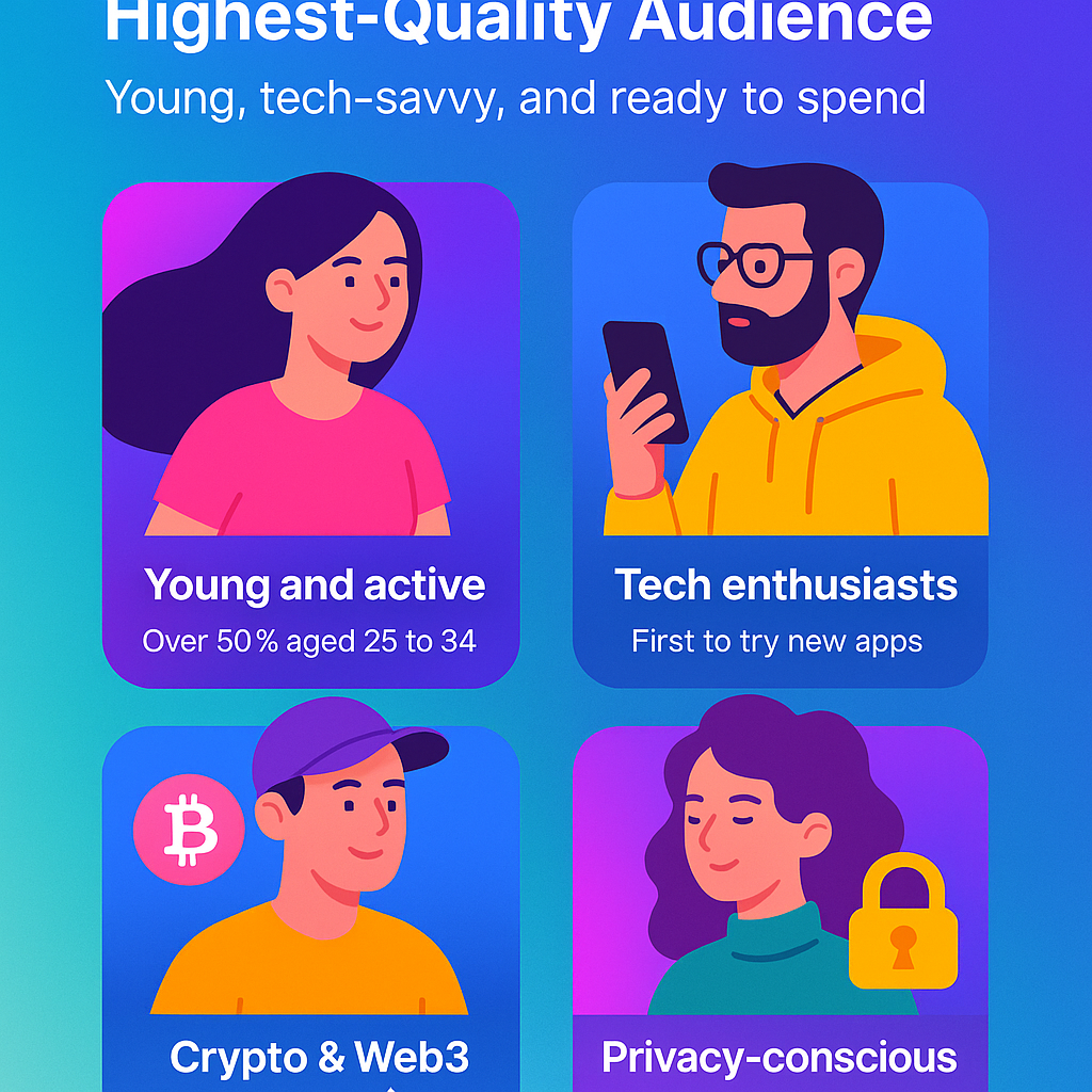 - Privacy-conscious, freedom-oriented users — a group less tolerant of traditional ads, but more loyal to brands that align with their values.