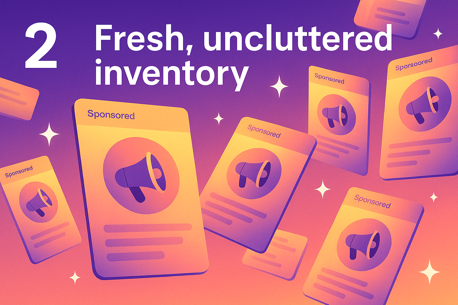 - Higher attention share: Your ad isn’t fighting against 20 others on the same screen. Instead, it stands out as something unusual.